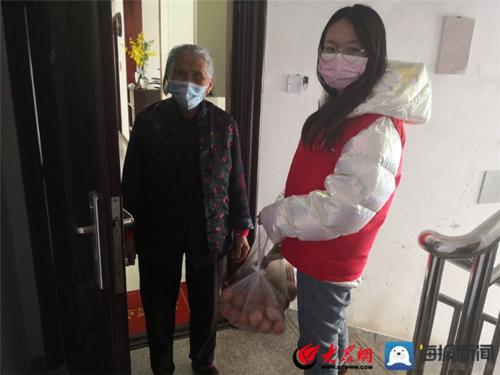 “王奶奶,您在吗?我是小蒋,我来给你送菜和水果了!您开一下门,别忘了戴口罩。”近日,在东平县虹桥社区的某小区内,一名在校大学生正在挨家挨户的给居民们配送生活必需品。